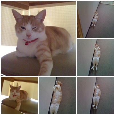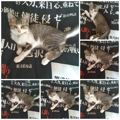 | プロフィール 2年前の夏に子供をつれてカブトムシを採りに行ったときです。 いつも行く街灯の所でうずくまってる猫を発見、網を持っていたので面白がって捕獲してみました。 子供に見せて放すつもりでした車の間かでルームランプをつけてよく見てみると、体中蚤だらけで足はタールでベトベトにそして後ろ足の指が曲がって腫れていました。 近くのコンビニまで行きミルクを飲ませてハムをあげてしばらく悩み連れて行くことにしました。 今まで猫を飼ったことはありましたが、これほど蚤のついた猫は初めてです。 ともかく隔離して悩んだあげくシャンプーすることに決めました。 シャンプーではすべて採るのは無理でした、でも毎日毎日せっせと蚤採りをして殲滅しました。 そして、蚤もいなくなりホットしていると今度は回虫を吐いたので病院に行きうんこの検査してみると、回虫とサナダムシがいるとのこと・・・きっと虫食って生き延びてたんだと思うとかわいそうです。で何とか全ての虫を殲滅して現在に至ってます。 チョー元気です。 |